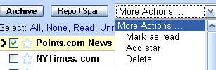 I’m excited about this one. Months and months ago I heard that they were testing “web clips”. This is essentially a one-line blog entry being shown. You can subscribe to several, and they will appear in random order. When I logged into Gmail this morning, it was there for me.